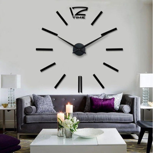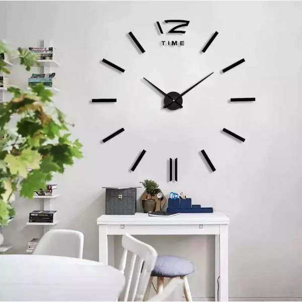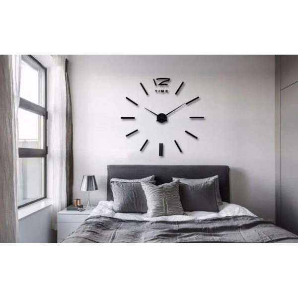 Часы настенные 3D Time Black наклейки с палочками пластик (черные)