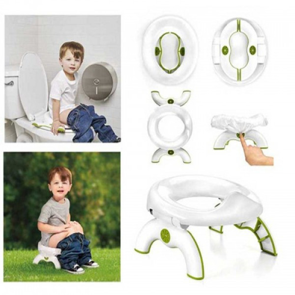 Уникальный дорожный горшок для детей от 9 месяцев. Может стать незаменимым помощником для родителей в дороге. Благодаря уникальной конструкции горшка, его можно использовать одним из двух способов: -как дорожный горшок со сменными пакетами - подгузник, легко трансформируется. -как гигиеническую накладку на унитаз - сидение для унитаза с ножками, помогая ребенку избежать лишнего контакта с его поверхностью, например в местах общественного пользования.
