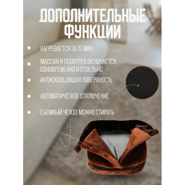 Его можно использовать и как массажер для ног, и как массажер для шеи, и как массажер для головы, массажер для тела и массажер для спины. Электрогрелка – достойный и оригинальный подарок маме, ведь тепло и уют это то, что делает нашу жизнь качественнее и приятней. Побалуйте себя массажером для ног электрическим, а вместе с тем подарите себе оздоровление и повседневное ощущение энергии. Красота и здоровье – это наше богатство и сила, поэтому так важно заботиться о себе! Грелка для ног с массажем позволит вам расслабиться и снимет усталость и напряжение тела и ног! Это одновременно и массажная подушка и грелка - то есть две функции в одном устройстве.