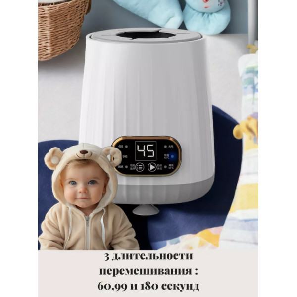 Особенностью этой модели, является возможность приготовления смеси для кормления ребенка инновационным способом. Термос нагреватель оснащен передачей вращения, что позволяет идеально перемешивать прикорм со средней скоростью без пузырьков и комочков. Это гарантирует правильное и качественное приготовление каши для вашего крохи. Электрический шейкер на присосках обладает простым и интуитивно понятным интерфейсом, что делает его удобным в использовании.
