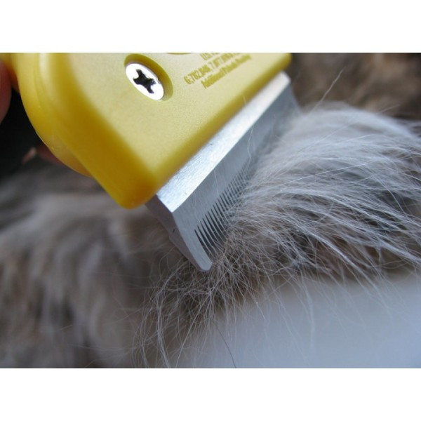 Этот инструмент идеально подходит для предупреждения появления колтунов у длинношерстных кошек. Чем больше подшерстка Вы вычешете, тем меньше вероятности появления колтунов. Кстати, Фурминатор при вычесывании подшерстка распределяет натуральный жировой компонент Вашего питомца, что делает его шерсть более мягкой и здоровой, а также придает лоск. Этот инструмент подходит как длинношерстным, так короткошерстным породам (особенно золотым ретриверам, шнауцерам, лабрадорам и т.д.). Конечно, есть и исключения, например, пудели, ши-тцу, пули, австралийские шелковистые терьеры. Эти породы либо не имеют подшерстка, либо такой метод неприменим к структуре их шерсти. В остальных случаях Фурминатор для собак и кошек работает на 100%!
