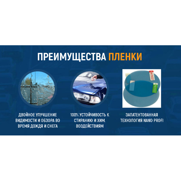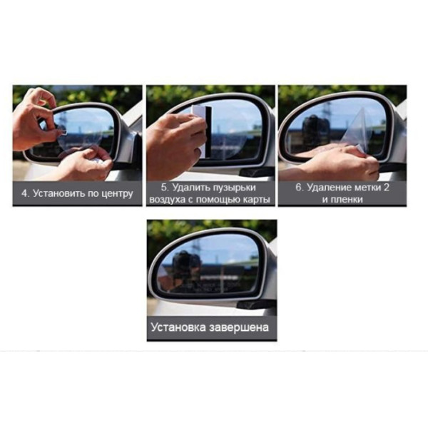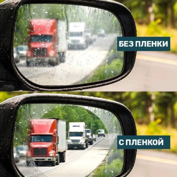Защитная плёнка защищает зеркала машины от влаги, пыли, грязи и льда. Это позволяет максимально сосредоточиться на дороге даже во время ливня и тумана. Размеры пленки 95х135мм. Пленка полностью прозрачная. Забудьте о том ,чтоб во время дождя ,вам нужно опускать стекла и вытирать от дождя боковые зеркала для лучшей видимости. Антидождь пленка делает стекло гладким, капли воды по нему мгновенно скатывается и не оставляют разводов.