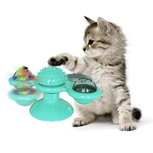 Игрушка для котов интеллектуальная спиннер Rotate Windmill с светодиодным шаром и отсек для корма