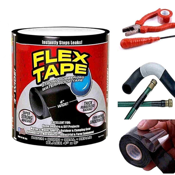 Это прочная прорезиненная водонепроницаемая лента мгновенно приклеивается к любой поверхности. Flex Tape не боится воды — она надежно склеивает предметы даже под водой благодая тройному толстому шару клея который практически сваривается на большинстве поверхностей.