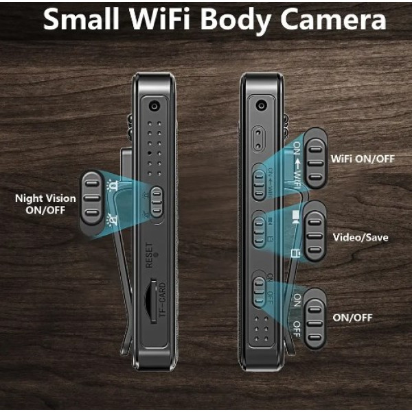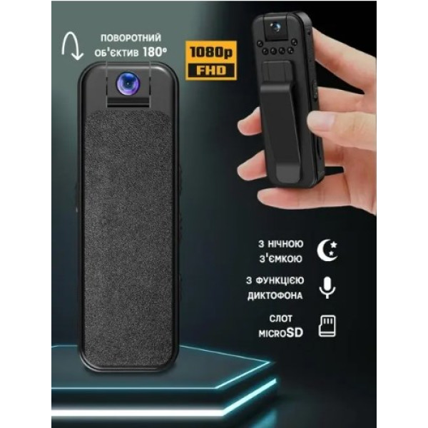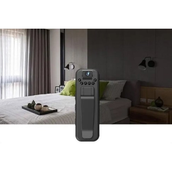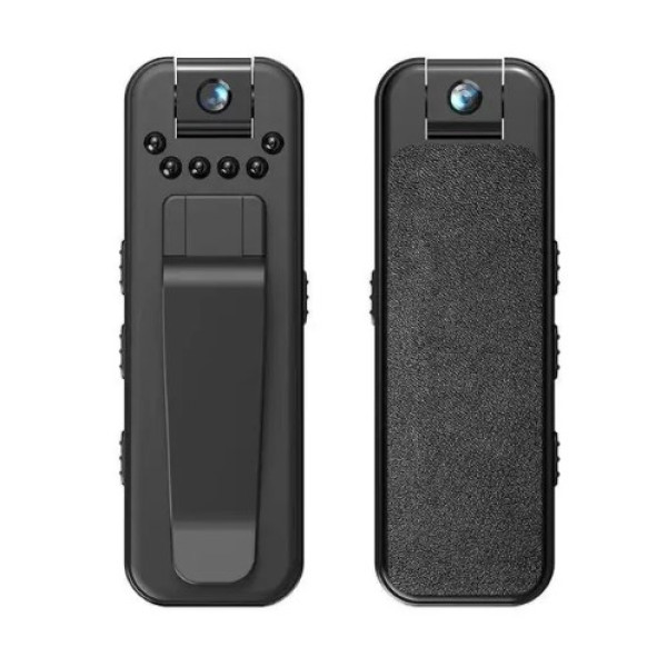 Мини видеокамера – маленький нагрудный видеорегистратор + диктофон, имеет очень маленький размер, всего 7.8 х 2.5 см. Ее удобно носить на одежде благодаря малому весу и клипсе.