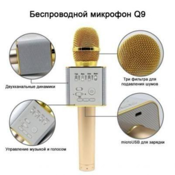 Характеристики караоке микрофона Q9 беспроводного портативного 2 в 1 с Bluetooth и функциональной колонкой: