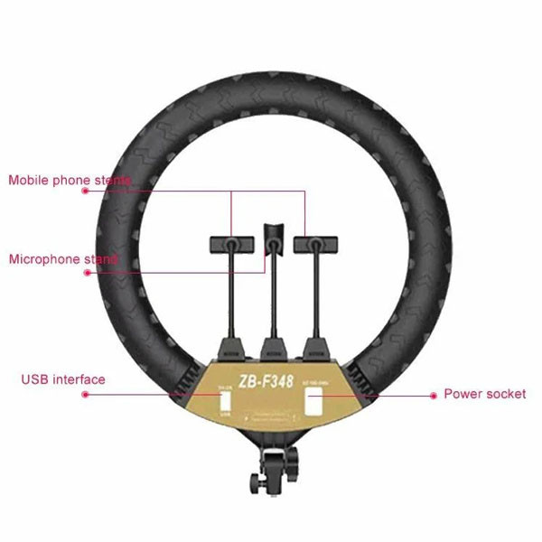 Кольцевая светодиодная лампа ZB-F348 диаметром 45 см  - это профессиональный инструмент с высоким индексом цветопередачи и высокой мощностью.