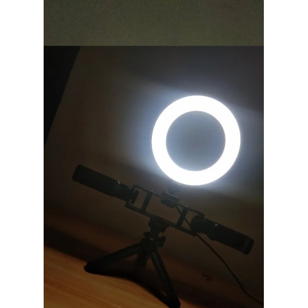 ОПТ Кольцевая светодиодная селфи лампа Multi-Position Fill Light Live Broadcasting для двоих телефонов