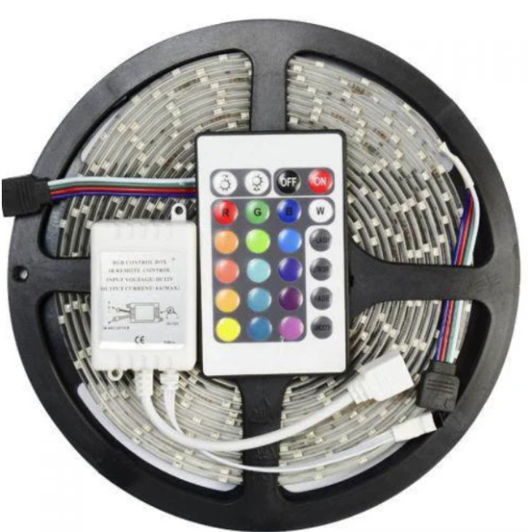 Комплект светодиодной ленты с возможностью выбора цвета 3528 RGB в силиконе 5 м с пультом и блоком питания