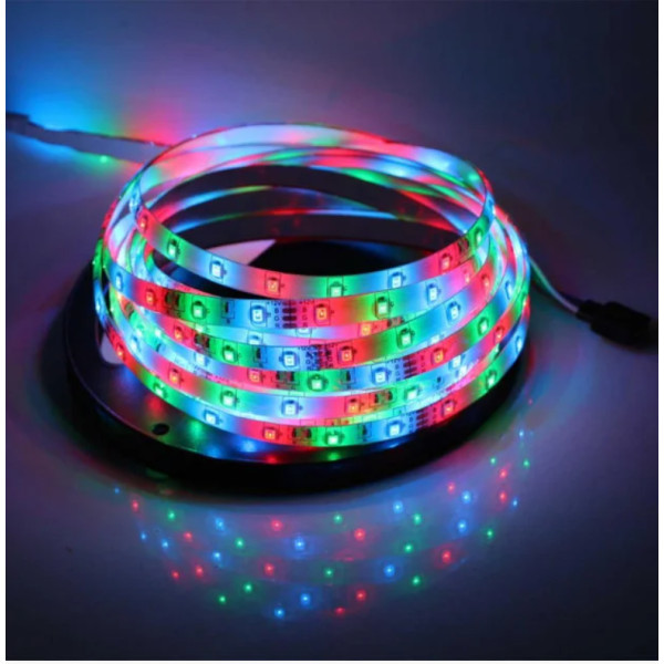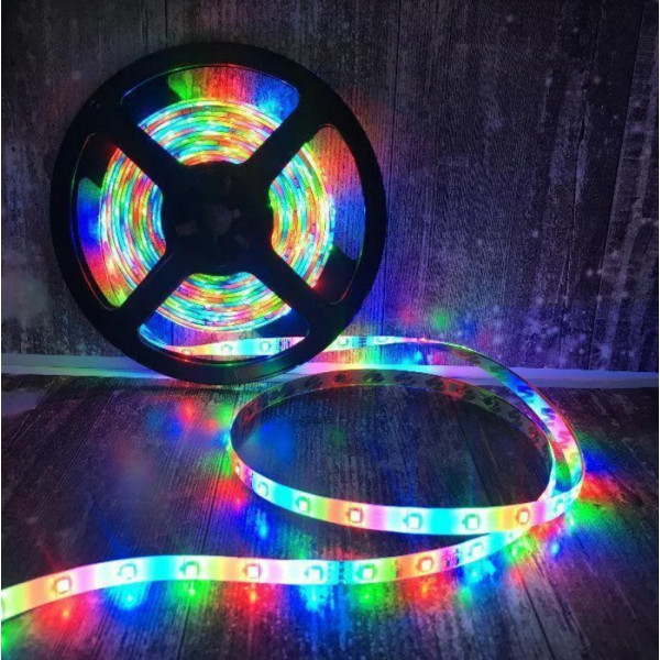 Гибкая светодиодная лента – это осветительный модуль, который состоит из гибкой основы, нанесенных на нее токопроводящих дорожек, резисторов и светодиодов, а так же управляющих элементов. Ширина ленты 1 см, толщина около 2 мм, а длинна в бобине 4,5 м. LED лента отлично подойдет для подсветки, поскольку имеет высокий уровень яркости и большой угол свечения равный 120°. На ленте расположены LED диоды, каждый из которых включает в себя три цвета зеленый, синий, красный. Общая длинна ленты до розетки - 5 м ( 4.5 м лента в силиконе + коннекторы + контроллер + блок питания). Особенностью данной ленты является возможность выбора цветов и оттенков освещения. Что позволят создать феерию цвета, привнося в дизайн вашего пространства новизну и неповторимый стиль. Многоцветная светодиодная лента SMD 5050 RGB используется для подсветки архитектурных и интерьерных элементов. Арки, потолочные и декоративные ниши подвесные потолки, барные стойки, светопрозрачные конструкции будут выгодно освещены, а пульт управления светодиодной лентой RGB позволит выбрать стиль освещения по вашему вкусу и настроению. Гибкая светодиодная лента SMD 5050 RGB выполнена на основе гибкой самоклеящейся печатной платы с прочным клеевым слоем. Имеется возможность деления на отрезки без потери их работоспособности, каждый участок может использоваться отдельно. Работает на низковольтном напряжении 12V (постоянного тока DC), что обеспечивает безопасность и экономичность использования.