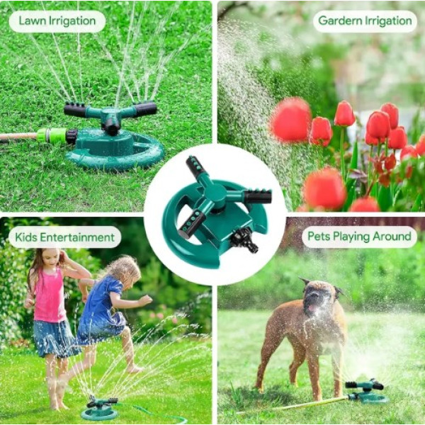 Этот распылитель легко подключается к любому садовому шлангу и предоставляет широкий спектр возможностей для полива. Вы можете использовать его для увлажнения газона, полива растений, деревьев, кустарников или даже распыления воды под батутом. Кроме того, вы можете установить его просто в вашем саду.