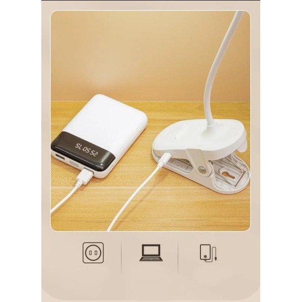 • Гибкость крепления: Лампа оснащена зажимными конструкциями с противоскользящими элементами, которые предотвращают скольжение и защищают поверхность от царапин. Это позволяет прикрепить лампу к столу, книжной полке, кровати или любой другой поверхности.