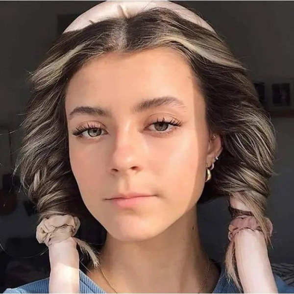 – Оберните слегка влажные пряди волос вокруг ленты, начав с верхней части головы и спускаясь вниз. Сначала с одной стороны головы, затем со второй.