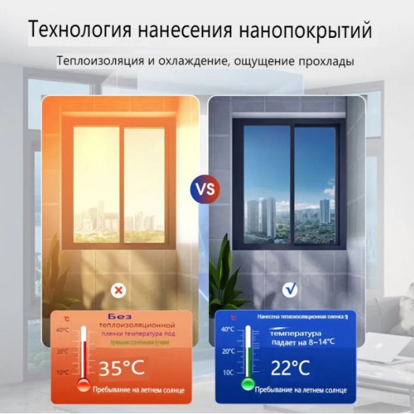Защита конфиденциальности – днем наружная сторона пленки создает зеркальный эффект, скрывая интерьер помещения от посторонних взглядов. Важно учитывать, что ночью, когда освещение в помещении сильнее, этот эффект исчезает, поэтому рекомендуется использовать шторы.