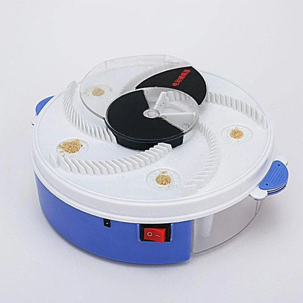 - Муха притягивается приманкой и переносится в коробку вращающаяся пластина.