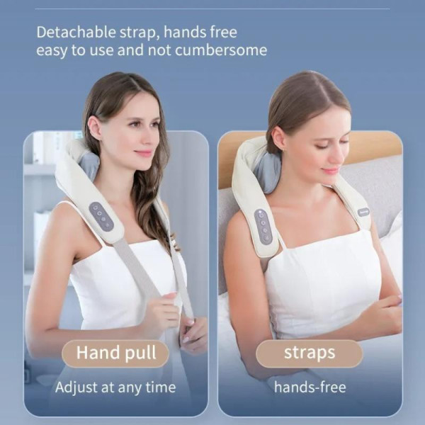 5. Дизайн без рук: Наш массажер для шеи имеет инновационный дизайн плечевого ремня, чтобы освободить руки во время массажа. Эта уникальная конструкция позволяет делать другие вещи во время массажа, нарушая ограничение традиционной ручной конструкции.