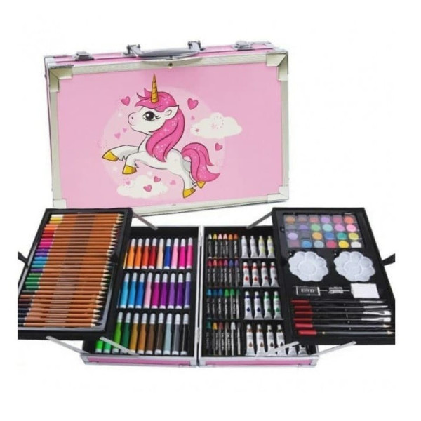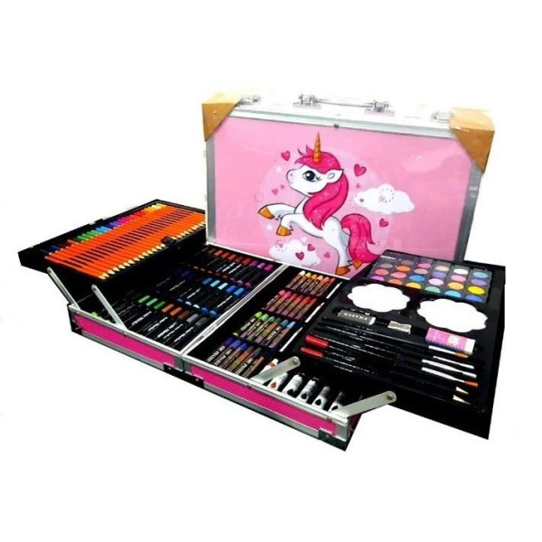 [ОПТ] Набор-чемодан для детского творчества на 145 предметов в алюминиевом кейсе "Единорог" Розовый