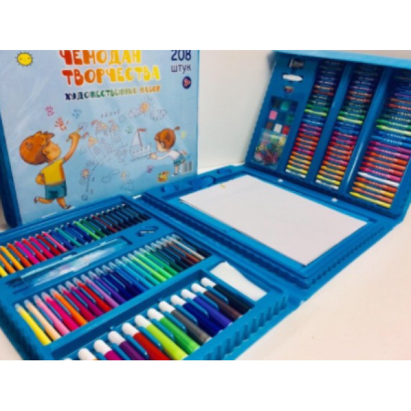 Набор для рисования UKC с мольбертом в кейсе-чемодане 208 предметов Синий
