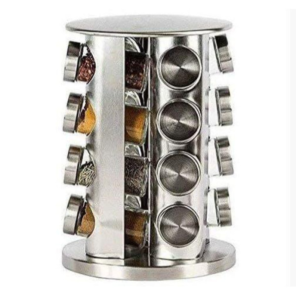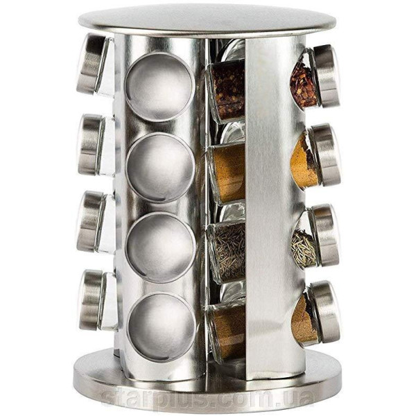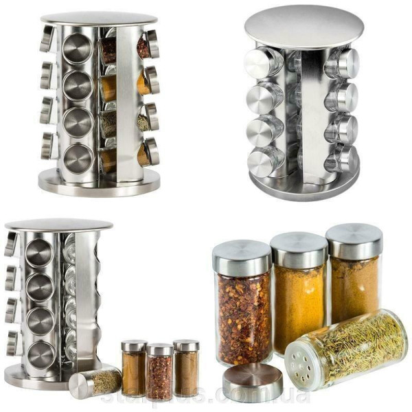 Подставка для специй изготовлена из нержавеющей стали и может вращаться по кругу, что очень удобно и практично. Емкости выполнены из стекла, а крышки к ним — из нержавеющей стали. Баночки плотно и надежно закрываются, благодаря чему ароматные приправы не потеряют свои свойства и запах.