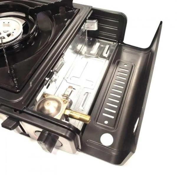 Очень практичная, экономичная и удобная в эксплуатации плита, что важно для дачников, автотуристов, рыбаков и охотников. Имеет собственный пластиковый защитный кейс для транспортировки. Газовый баллон находится внутри плиты.