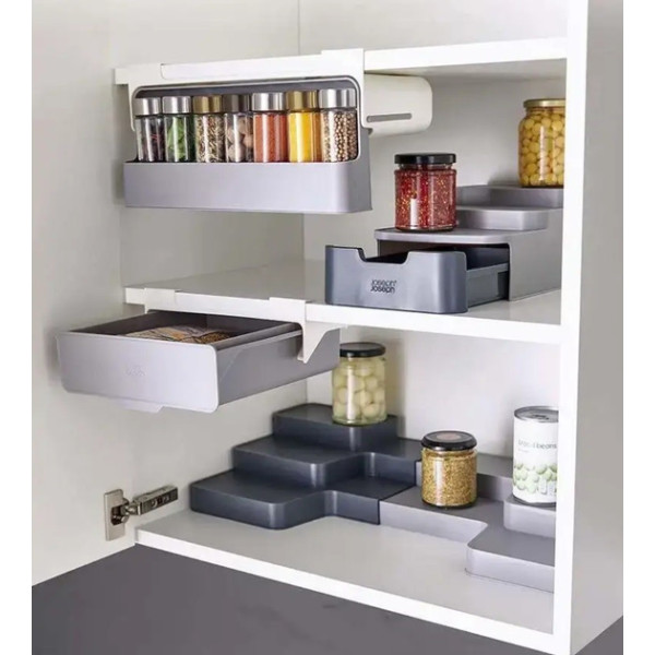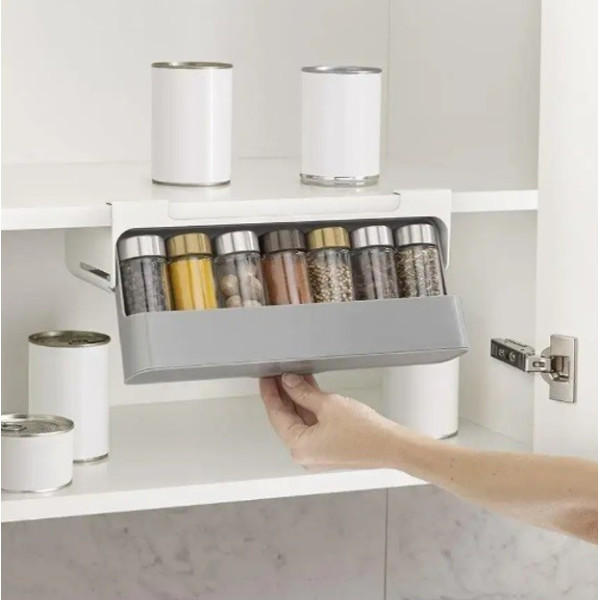 Набор оснащен выдвижным отделением, способным вместить до 6 стандартных банок со специями.