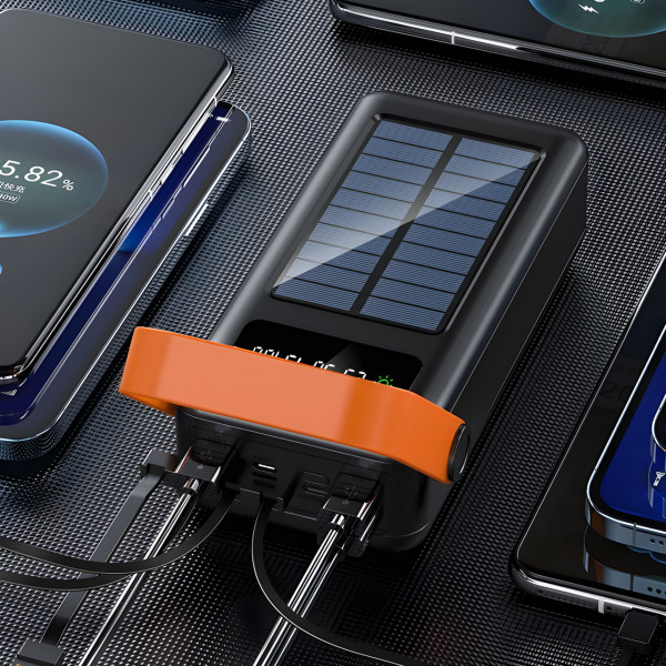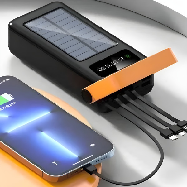 Power Bank на 60000 мАч с солнечной панелью и фонариком – это инновационное и удобное зарядное устройство, совместимое с разнообразными видами популярной техники благодаря встроенным в корпус переходникам. Устройство позволяет заряжать смартфоны, плееры, планшеты, навигаторы, камеры, электронные книги и другие устройства, что делает его незаменимым для активного отдыха и путешествий.