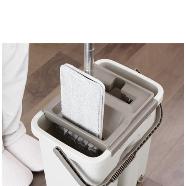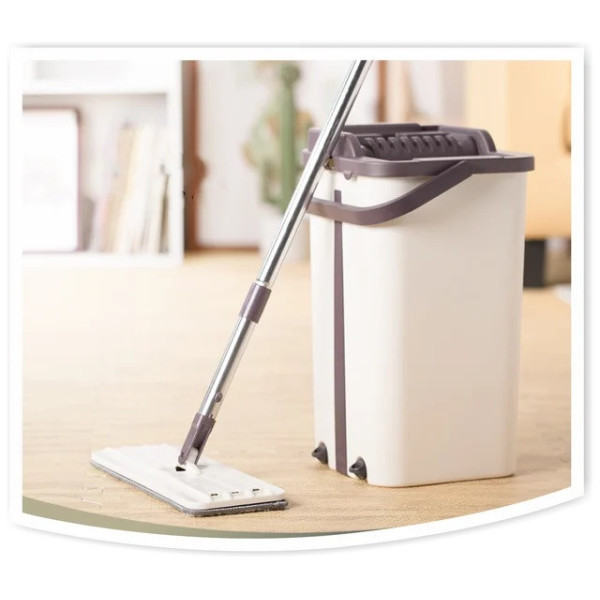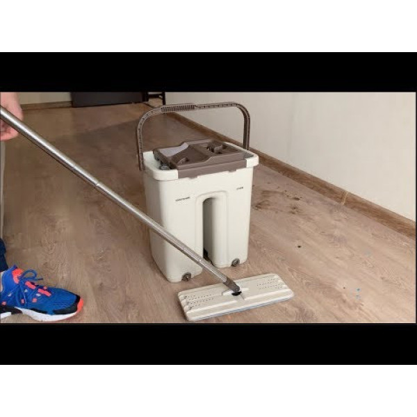 Благодаря ведру со специальной крышкой Вы с легкостью вымоете и выжмете тряпку, не прикасаясь к ней руками и не снимая ее со швабры.