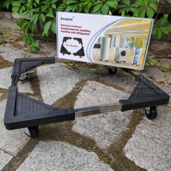 Многофункциональная передвижная подставка на колесах для перемещения тяжелых предметов мебели и техники - это крайне необходимая вещь в домашнем хозяйстве. Подставка для транспортировки холодильника (стиральной машины) Base for washing machine, обеспечивает возможность влажной уборки под бытовой техникой и легкость ее перемещения предотвращая повреждение мебели и пола.
