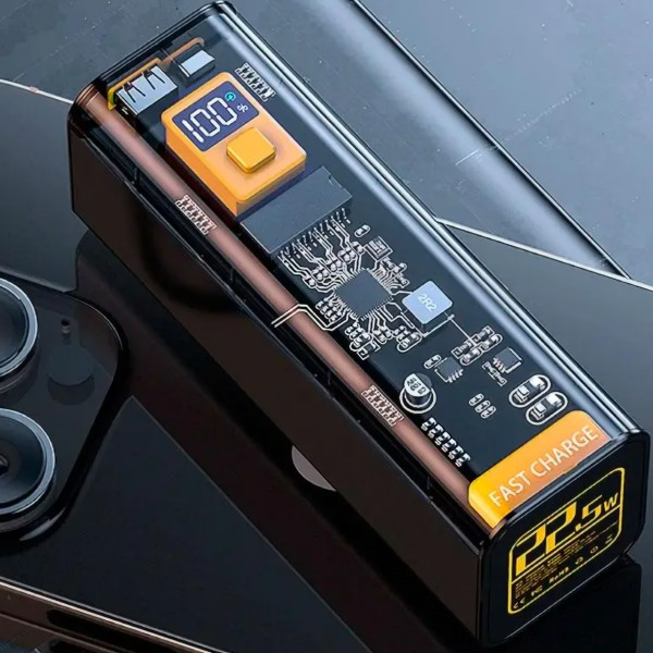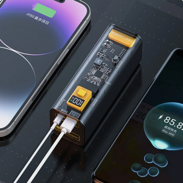 Повербанк Cyberpunk — это устройство, поддерживающее двустороннюю зарядку и различные протоколы, а именно PD, QC, AFC, SCP. Девайс оснащен интерфейсами подключения USB-A и USB Type-C, причем можно использовать не только для зарядки аккумулятора, но и на выход для подключения к вашим гаджетам. Прозрачный корпус и дизайн в стиле киберпанк не оставят безразличным фанатов игры, а встроенный дисплей во время информирует об остатке заряда вашего аккумулятора. Также прибор оборудован большим количеством защиты: от перегрева, короткого замыкания, перенапряжения и других факторов. Емкая батарея на 40000 мА/год в комбинации с протоколами зарядки позволяет заряжать не только смартфоны, но даже ноутбуки.