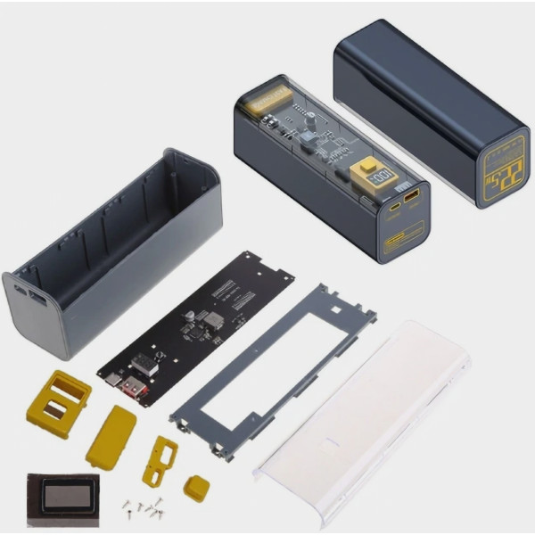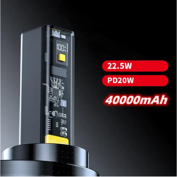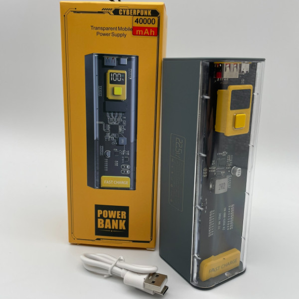 Внешний аккумулятор Power Bank - это уникальное и современное портативное зарядное устройство с емкостью 40000 мА·ч, отличающееся наличием Led дисплея и футуристичным дизайном в стиле киберпанк.