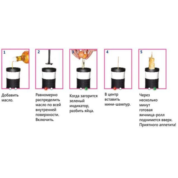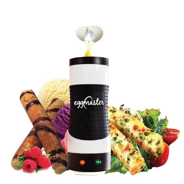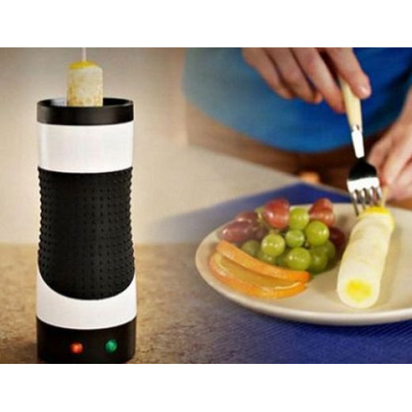 Яйца на палочке, яйцо в одеяле, бурито эггмастер и еще более 500 вкусных и полезных блюд для взрослых и детей всего за пять минут !Egg Master это небольшой кухонный прибор цилиндрической формы с антипригарной поверхностью, которая окружена нагревательным элементом со всех сторон. Нужно только разбить яйцо, вылить его в полость и ждать когда выскочит готовая яичная трубочка. Можно украсить яйцо различными специями, соусами и другими ингредиентами.