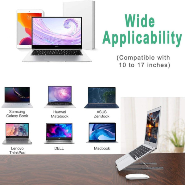 • Охлаждение. Подвесная конструкция из алюминия позволяют подставке лучше рассеивать тепло. Теперь вы можете не беспокоится о перегреве своего ноутбука, когда вы работаете или учитесь.