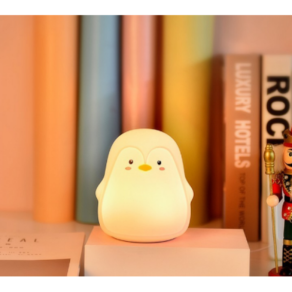 Ночник Пингвин меняет 7 цветов свечения при помощи легкого хлопка по корпусу. Имеет режим автоматический смены цвета. Может работать от встроенного аккумулятора, розетки, компьютера, Power-банка. Время работы 8 часов.