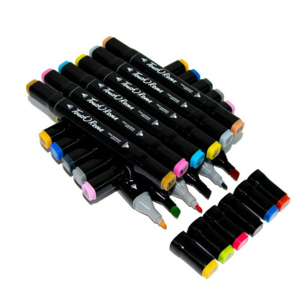 Скетч-маркеры Touch - это самые популярные спирторвые скетч-маркеры в Украине. Являются одними из самых востребованных спиртовых, двухсторонних маркеров. В наборе из 36 маркеров дизайнер найдет вдохновение для реализации своего творческого потенциала. Маркер имеет 2-а пера (перо "долото" и перо маркер). Чем больше количество маркеров в наборе тем ниже стоимость одного маркера с пересчетом на количество. Цвет маркера отображен на колпачке, там же и номер маркера. Это значительно упрощает работу при выборе необходимого цвета. Стоит учесть, что насыщенность чернил чуть больше чем цвет на колпачке.