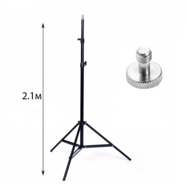 Cтойка штатив Stand с максимальной высотой 2,1 м идеально подойдёт для всех типов кольцевых ламп, а также предназначена для установки студийных и камерных вспышек.