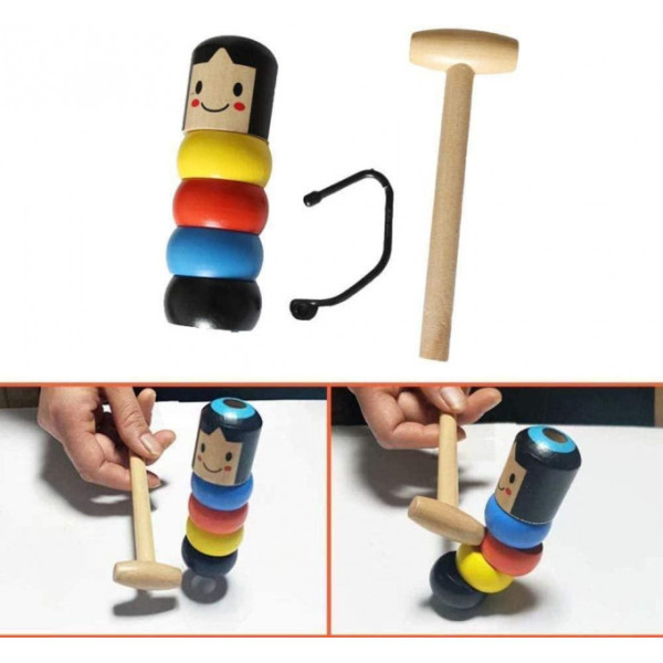 Стойкий деревянный человечек-неваляшка которого никто не может победить Small a wooden man