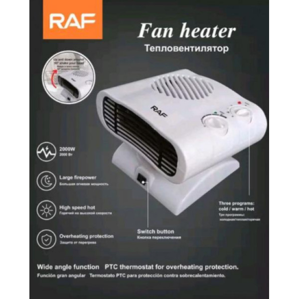 Тепловентилятор RAF – это уже модернизированный обогреватель, который способен поворачиваться на 90 градусов, при этом не теряя высоких показателей мощности.Очень компактная дуйка, простая и удобная в эксплуатации, благодаря внедрению новых технологий увеличивается передача полезного объема воздуха, что в свою очередь способствует быстрому обогреву помещения