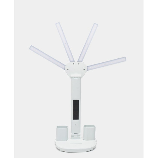 Лампа настольная с 4-ю плафононами, RGB подсветкой, часами и вентилятором.