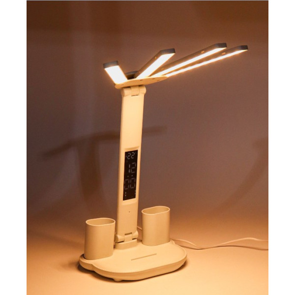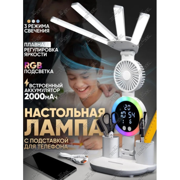 Современная настольная лампа – это многофункциональное устройство, объединяющее мощное освещение, атмосферная RGB-подсветка, цифровые часы и встроенный вентилятор. Она станет идеальным выбором для рабочего места, учебы, чтения или создания уютной атмосферы.