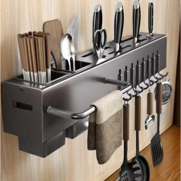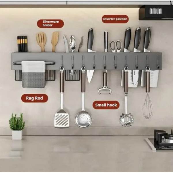 Металлическая настенная полка-органайзер для кухонных предметов 50 см – удобство и порядок на вашей кухне.