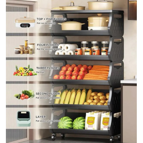 Металлическая тележка-полка на 5 ярусов с колесами – это удобное, стильное и функциональное решение, которое поможет оптимизировать пространство и сделать ваш дом более организованным!