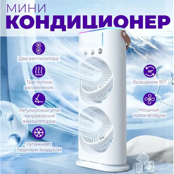 Мини кондиционер Double-ended Spray Fan сочетает в себе вентилятор, увлажнитель и очиститель воздуха в одном устройстве. Мини вентилятор имеет три скоростных режима, с помощью которых Вы можете создать для себя комфортный микроклимат в любом месте.