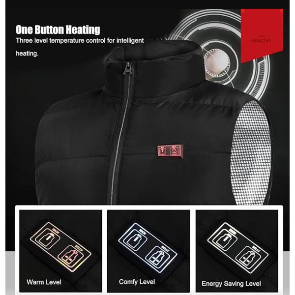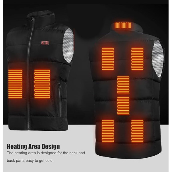 Сохраняйте тепло: Благодаря встроенному нагревательному элементу из углеродного волокна и трем уровням нагрева от 25 ℃ до 45 ℃ этот подогреваемый жилет USB создан для того, чтобы согревать вас в холодную погоду. Он обеспечивает постоянное тепло для девяти различных областей тела, включая шею, спину, живот и талию. Сохраняя тепло вашего тела, он способствует метаболизму и снимает мышечную боль, обеспечивая вам комфорт во время активного отдыха.Надежное использование: выход U2A или 2.4A USB этого обогревающего жилета обеспечивает надежную работу.