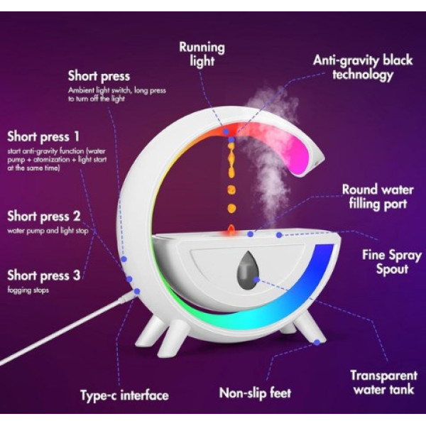 T00K8 – это инновационный увлажнитель воздуха, сочетающий эффект антигравитации, ночник с RGB-подсветкой и стильный дизайн. Благодаря технологии левитации воды он создает уникальную атмосферу и увлажняет воздух для комфортного дыхания.
