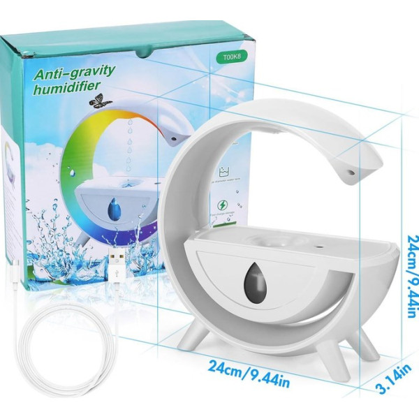 Антигравитационный увлажнитель воздуха ночник T00K8 с RGB-подсветкой (белый) – современный дизайн и комфортный микроклимат.
