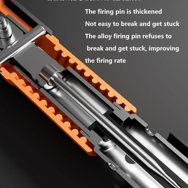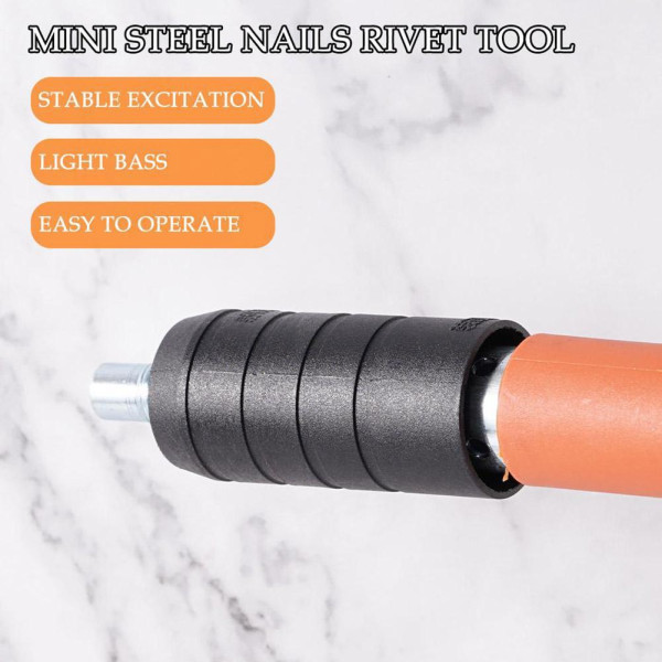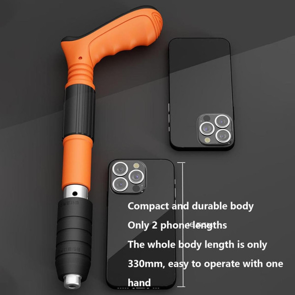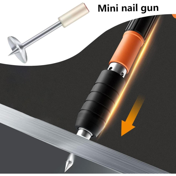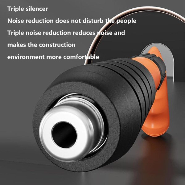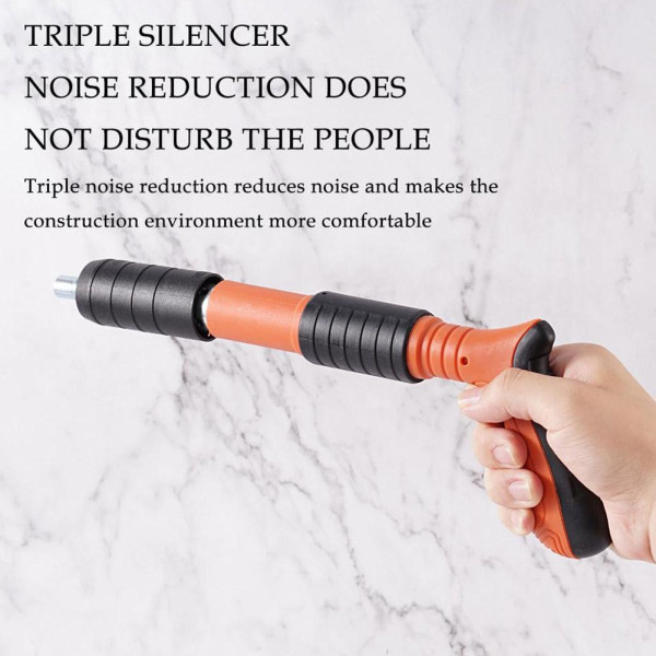 Завдяки подвійному глушнику, інструмент працює тихо та безпечно, створюючи комфортні умови для будівництва. Під час використання цвяхозабивача необхідно дотримуватися заходів безпеки та не спрямовувати його на людей.
