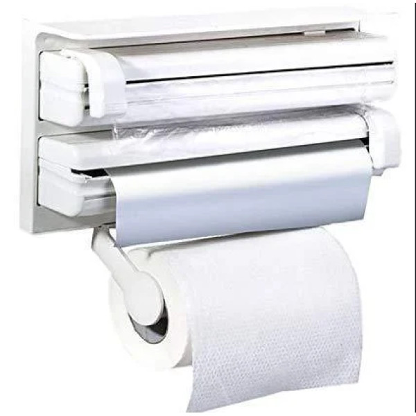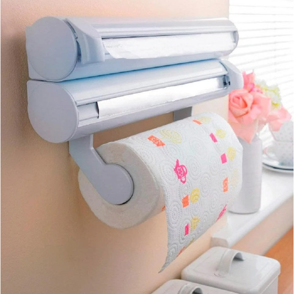 Кухонний диспенсер Kitchen Roll Triple Paper Дуже зручний кухонний диспенсер Kitchen Roll Triple Paper допоможе Вам тримати кухню в чистоті та порядку! Диспенсер можна використовувати для харчової плівки, фольги та паперових рушників. Тепер відрізати шматок плівки можна буде швидко та легко, не потрібно бовтатися, заплутуючись у рулонах!