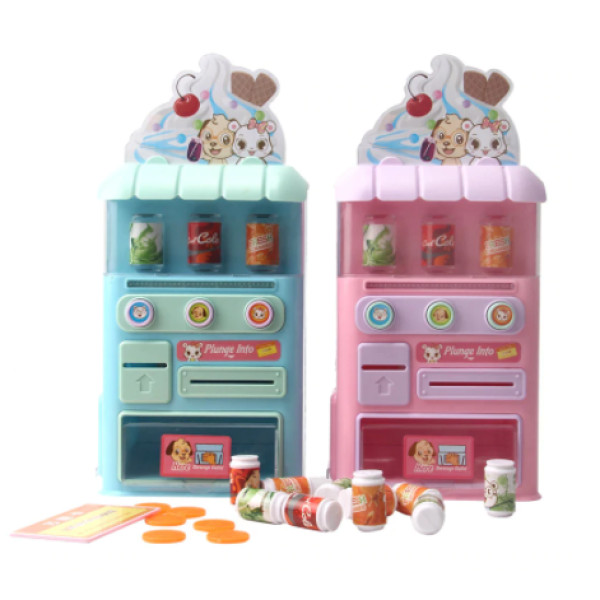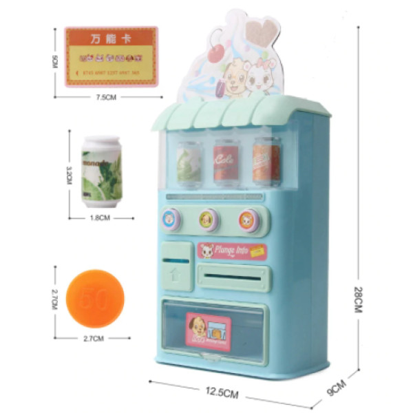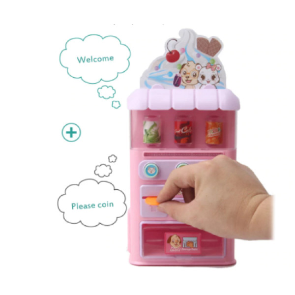 Цей міні автомат має блискучі вогні і голосові підказки. Мила форма будиночка приверне увагу дитини і зовсім не відрізняється від дисплея торгового автомата. Імітує роботу реального торгового автомата, просто покласти монету або вставте карту і натисніть на кнопку, і напій автоматично впаде, щоб задовольнити цікавість дитини.