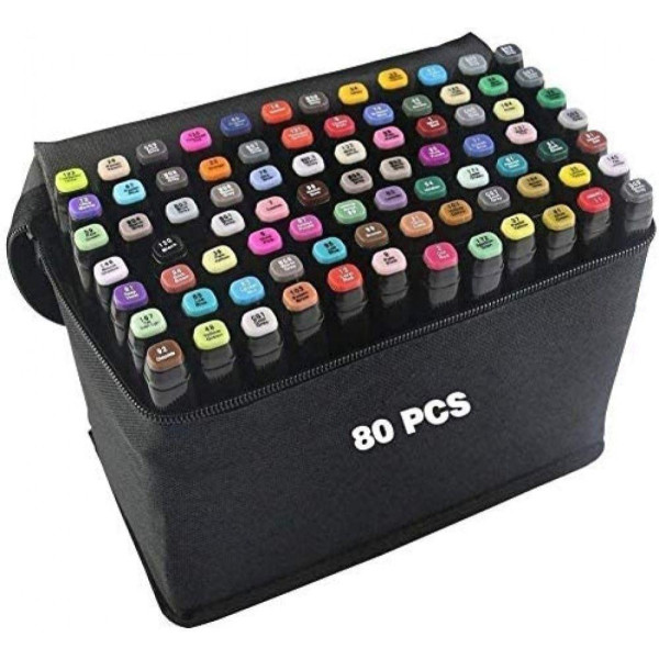 Серія з чорним корпусом маркера - нова покращена формула чорнила. Маркери для малювання і скетчів в чорному тканинному футлярі. Двосторонні, на спиртовій основі. У наборі 80 шт. Основна палітра, оптимально підібрана для малювання всіх стилів.