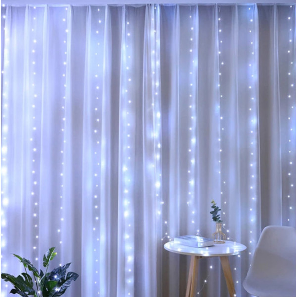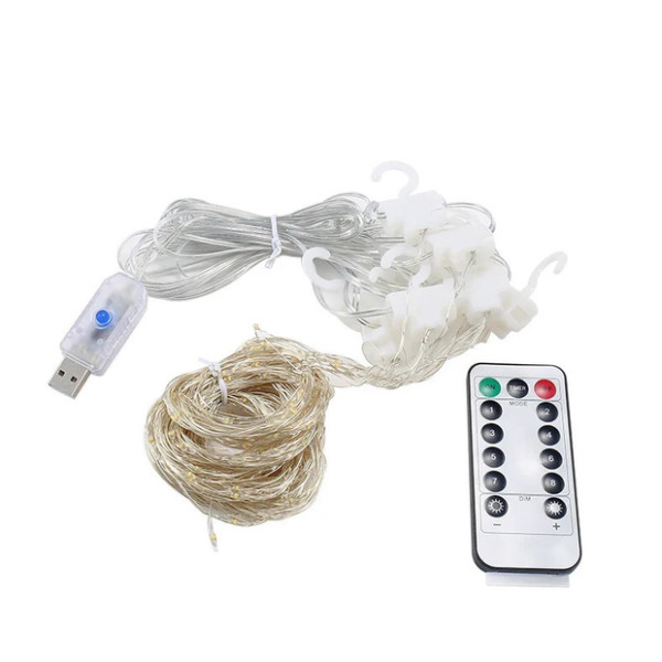 Гірлянда водоспад-штора 3 метри * 3 метри на гачках із пультом керування білий від USB AT-14-2